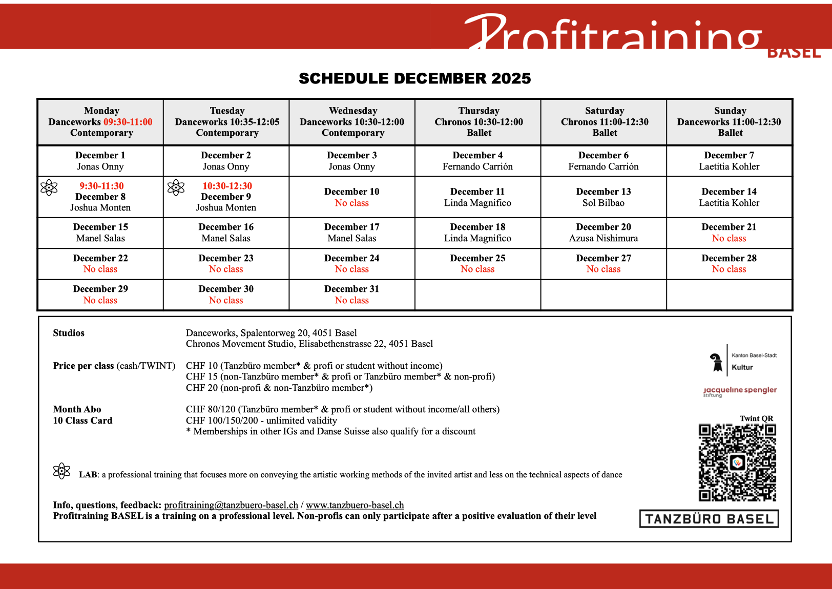 For specific questions: profitraining@tanzbuero-basel.ch.