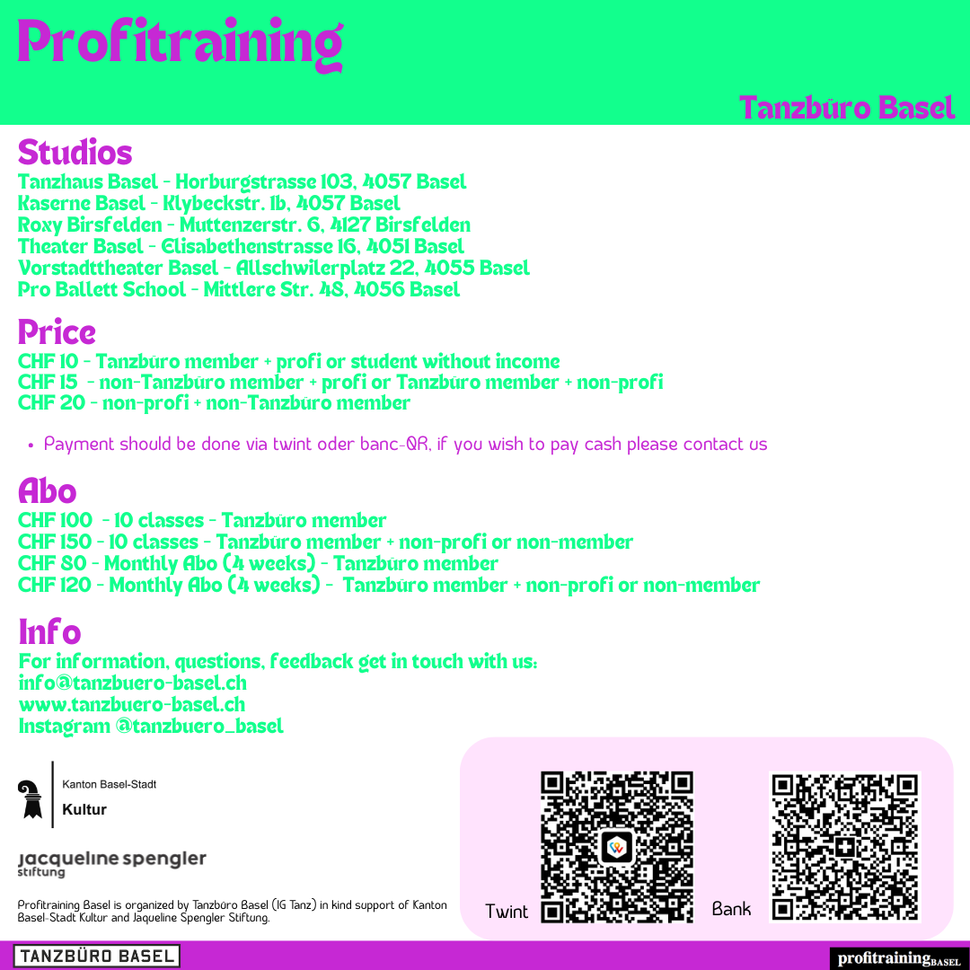 Für Fragen zum Profitraining / For specific questions: info@tanzbuero-basel.ch